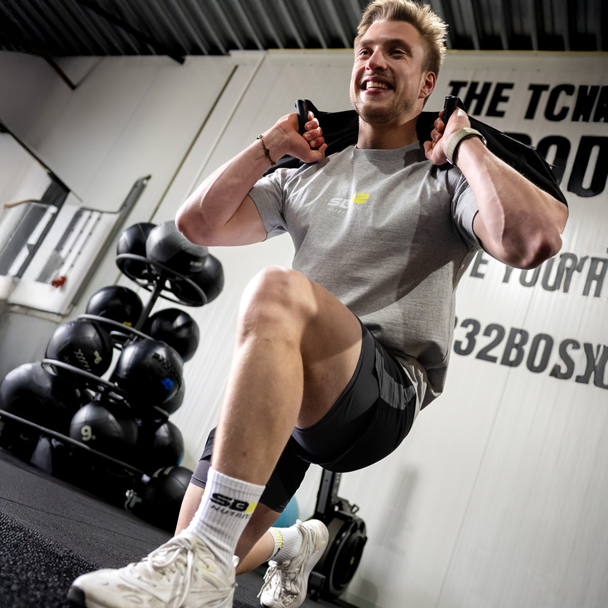 Comfortabel, ademend en vooral: stijlvol. Onze SB32 Nutrition sportsokken zijn speciaal ontwikkeld voor iedereen die niet alleen wil presteren, maar er ook goed uit wil zien terwijl je dat doet. Met een strakke pasvorm, duurzaam materiaal en het iconische SB32-logo, zijn deze sokken een must-have voor elke sportoutfit.